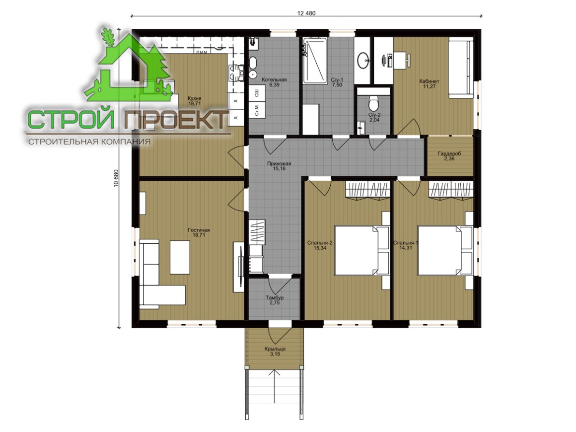 Площадь 1 этажа 117 м2