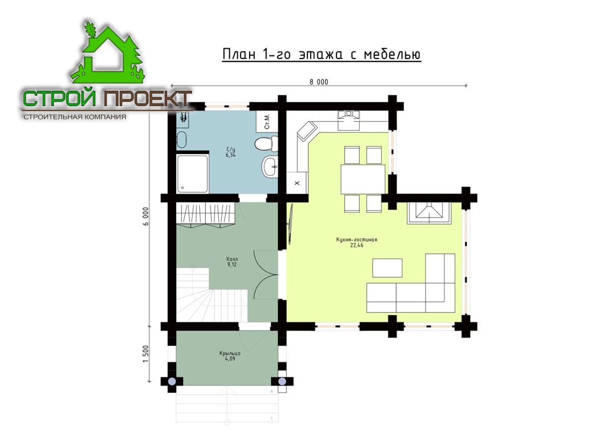 Проект дома из бревна ДО-37 6x8 (70 м2)